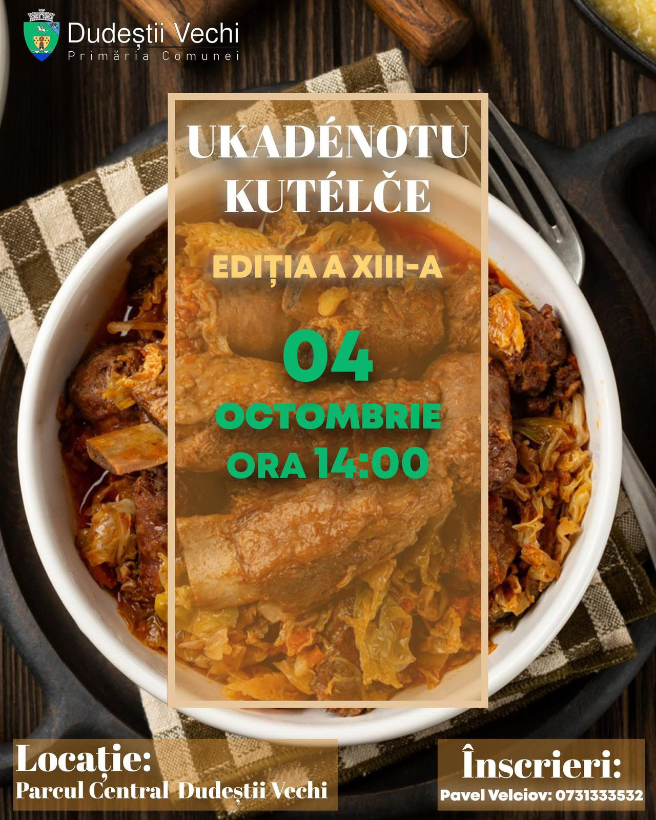 Sâmbătă, 4 octombrie, în Parcul Central, va avea loc concursul „Ukadénotu Kutélče”, ajuns la ediția a XIII-a, unde cea mai bună varză cu carne la cazan din Banat va fi pregătită după rețete bulgărești, transmise din generație în generație.