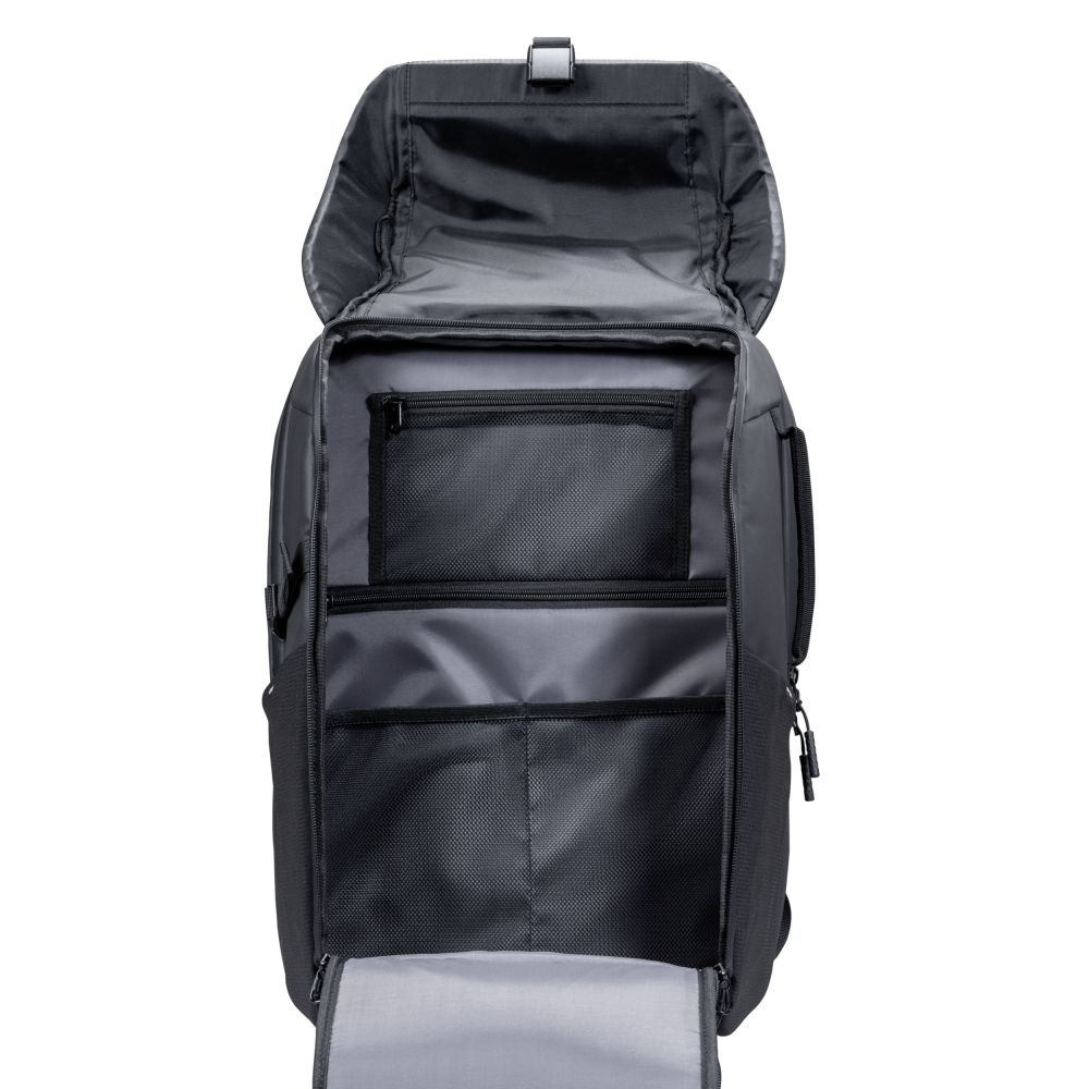 Cu un volum de 25 de litri, reușește să fie în același timp încăpător și compact, fiind destinate celor care călătoresc des sau fac naveta. Îmbină designul practic cu materiale sustenabile pentru persoanele mereu în mișcare. Materialul PU rezistent la apă cu certificare IPX4, fermoarele etanșe și capacul protector din partea superioară îți păstrează lucrurile în siguranță chiar și atunci când te prinde ploaia pe neașteptate, iar compartimentul căptușit pentru laptop, ușor de accesat, protejează dispozitive de până la 17 inch.