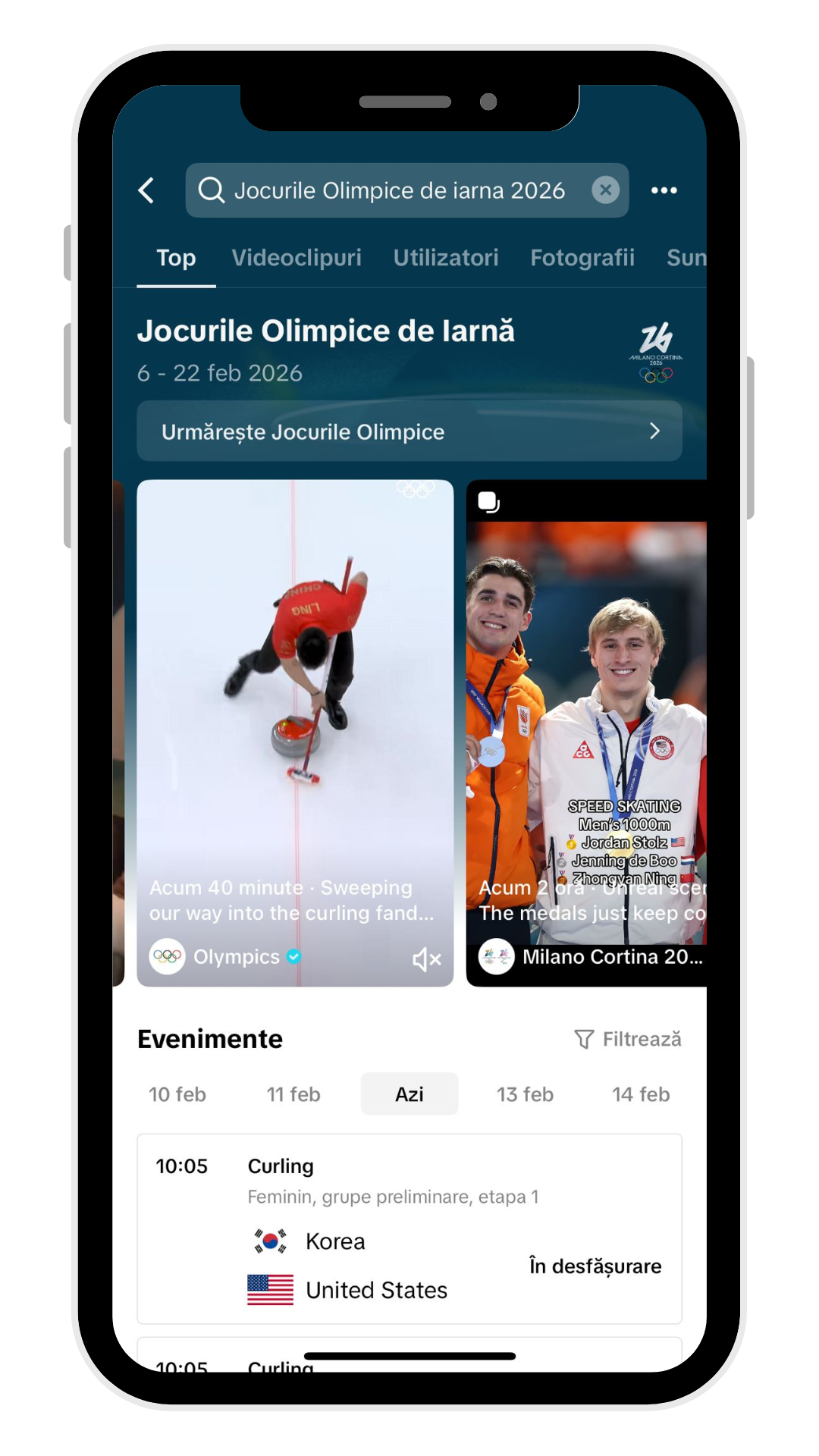 Pentru fanii care vor să rămână conectați la tot ce se întâmplă la Jocurile Olimpice de Iarnă 2026, hub-ul dedicat pe TikTok oferă acces rapid la programul competițiilor, clasamentul medaliilor, conturi oficiale precum @olympics și @milanocortina2026 și videoclipuri populare. Accesibil prin căutarea unor cuvinte-cheie precum „Jocurile Olimpice de iarnă 2026”, hub-ul le permite fanilor să urmărească sporturile și sportivii preferați și să retrăiască momentele spectaculoase de la competiții.