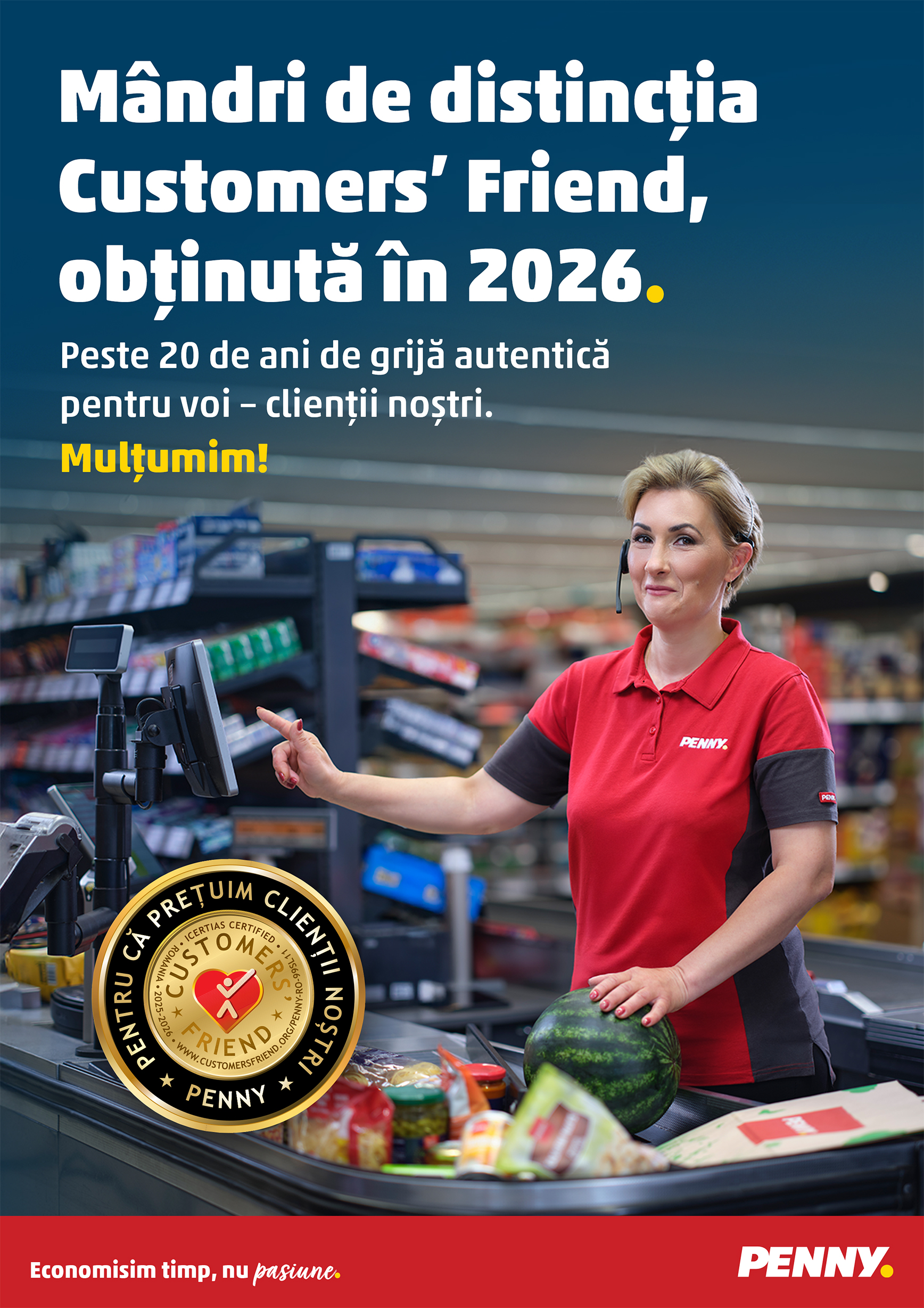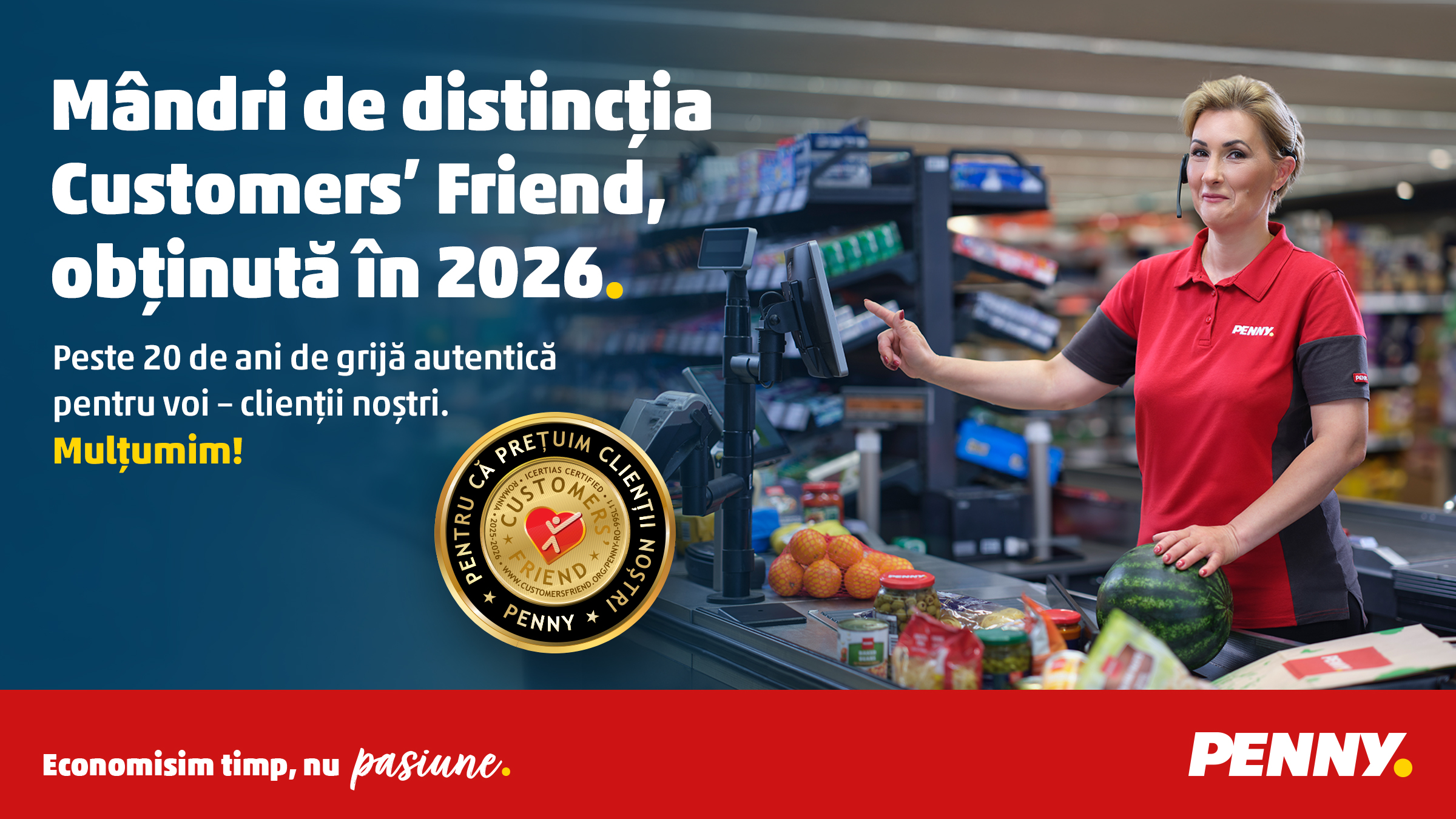 „Certificarea Customers’ Friend și scorul obținut confirmă ceea ce ne ghidează zi de zi în activitatea noastră: relațiile construite cu clienții, colegii și partenerii noștri contează. Pentru noi, experiența din magazine nu înseamnă doar prețuri sau produse, ci modul în care oamenii se simt atunci când aleg PENNY. Este o recunoaștere care ne responsabilizează și ne motivează să rămânem consecvenți în tot ceea ce facem.”, a afirmat Bogdana Todor – Team Leader HR Manageri Regionali la PENNY România.